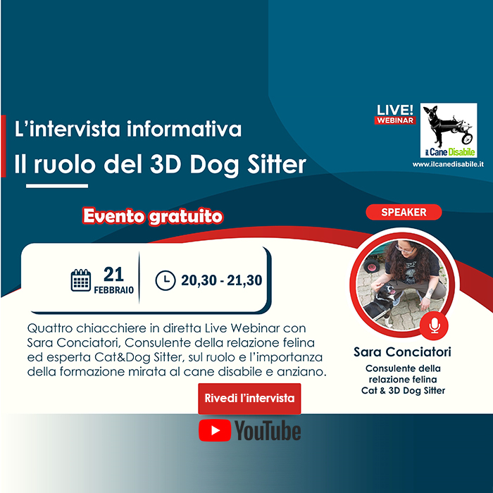 Cosa cambia nella vita di un cane paralizzato? Questo è il punto di partenza di questo Seminario che offre una panoramica in un ambito ancora poco conosciuto, riprendendo e approfondendo le implicazioni psicologiche del cane e di come vive la sua nuova condizione, andando oltre qualunque luogo comune.