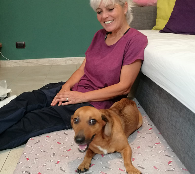 “Eliana Martorano, garzie alla tua disponibilità e ai tuoi preziosissimi consigli ho imparato che gestire un cane disabile, per quanto impegnativo, è un compito meno gravoso di quanto temessi. Non finirò mai di ringraziarti… e anche Brodo ringrazia!!”